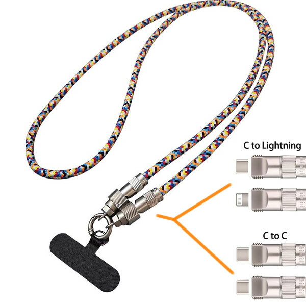 カラフルで可愛いネックストラップ…かと思いきや、実は最新の急速充電規格に対応した凄腕ケーブルなんです!AndroidもiPhoneもOK。ネジ式の固定金具を採用しているので、大切なスマホが不意に外れてしまうリスクをしっかり軽減してくれます。